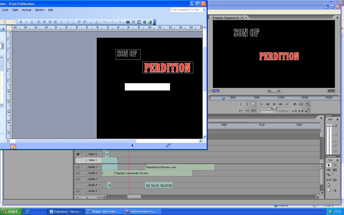 Fig1. I have settled for my orginal planned layout. As you can see, the colours red and black are used frequently, representing blood, danger, darkness and mystery. The title is at the bottom, drawing the attention to the whole page. It is in a mist of black, representing the horror genre and adding to the suspensive atmosphere. 'Perdition' is slightly bigger than 'son of' because it is the most important word in the title.